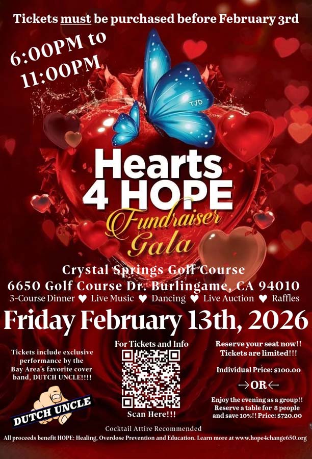 | Fri 02/13/26 6-11 PM | Hearts 4 HOPE Fundraiser Gala. Tickets required. See flier. |